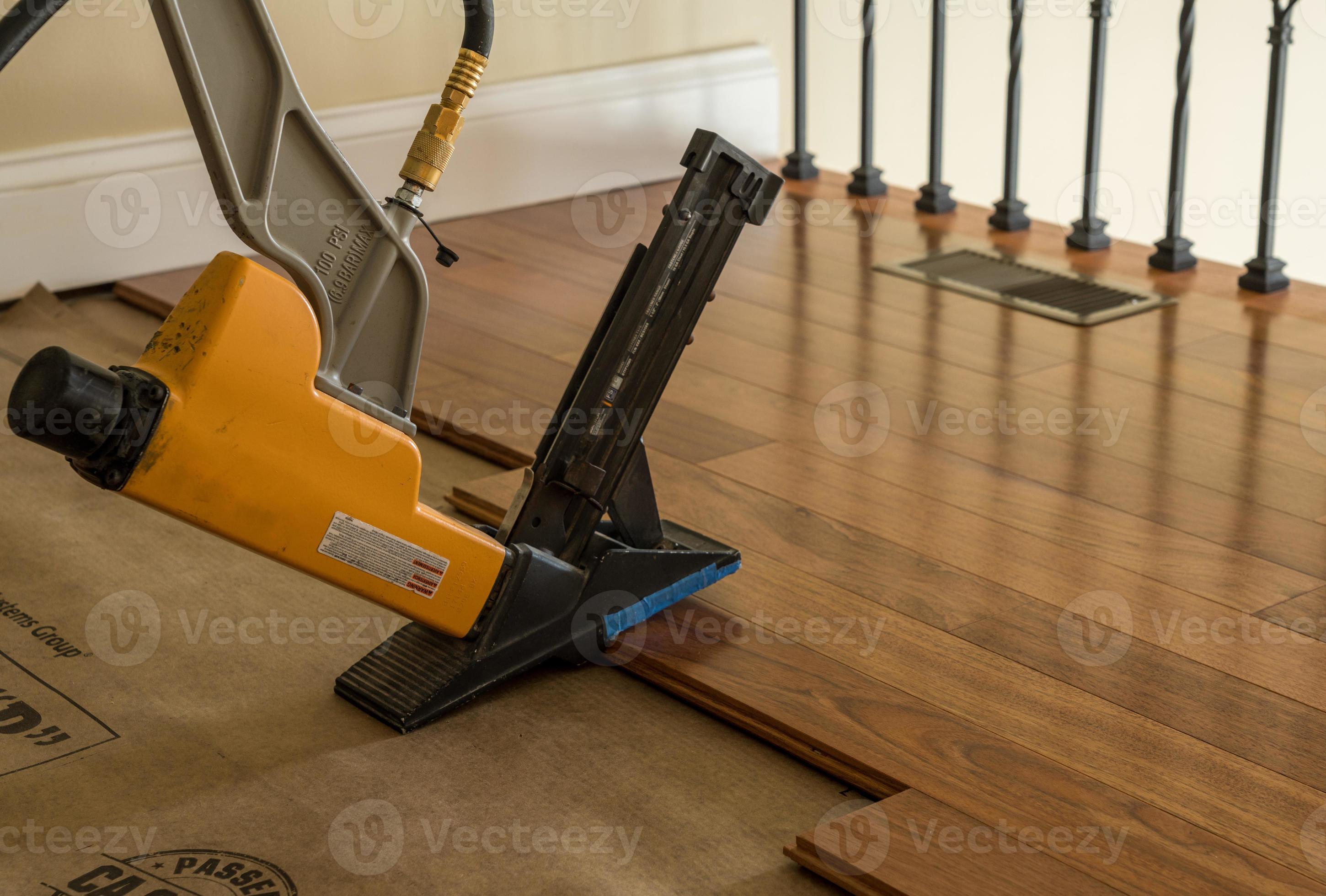 High Pressure Nail Gun Ready To Install Sections Of Brazilian Cherry Hardwood Flooring 7220855 Stock Photo At Vecteezy